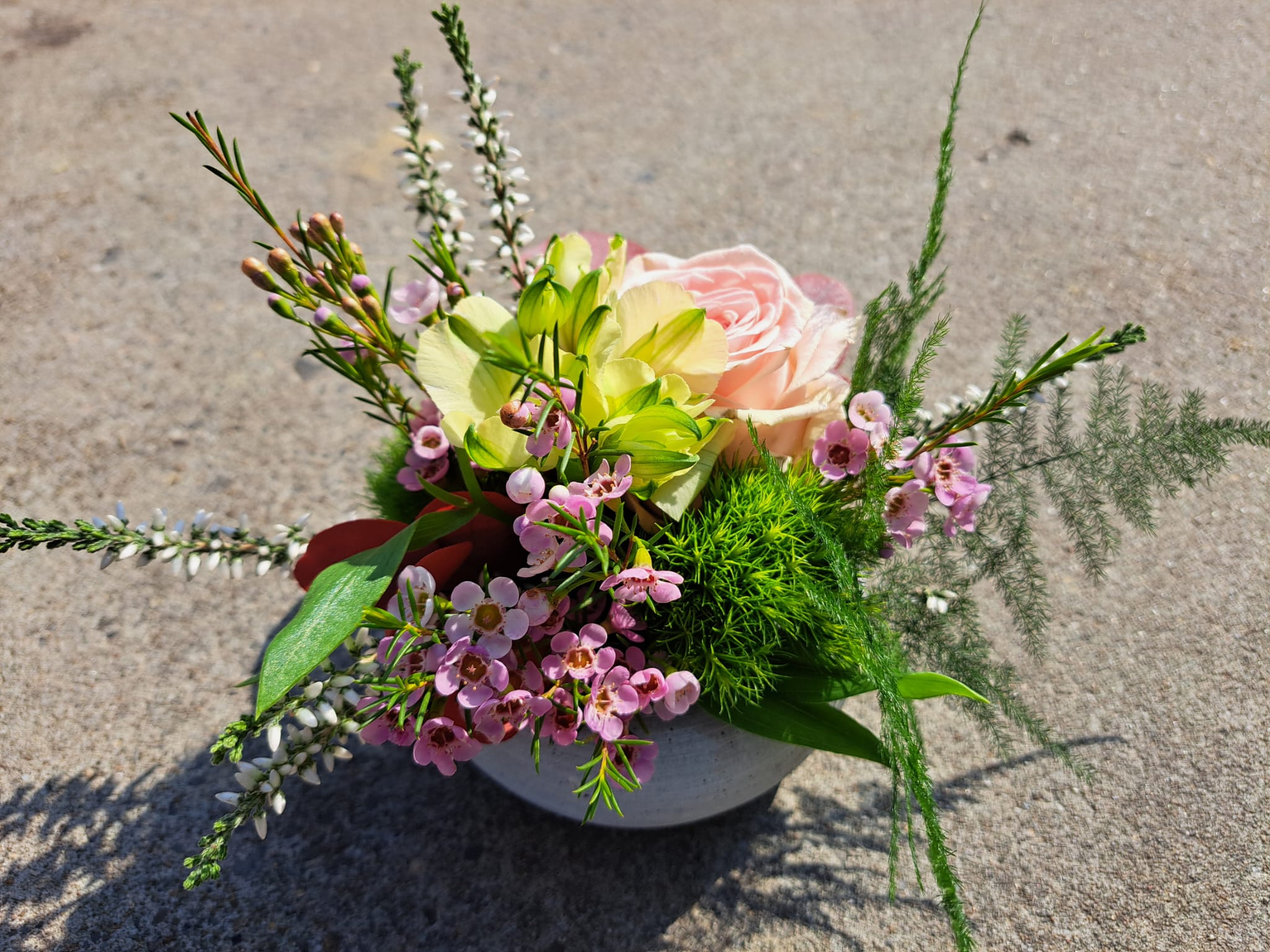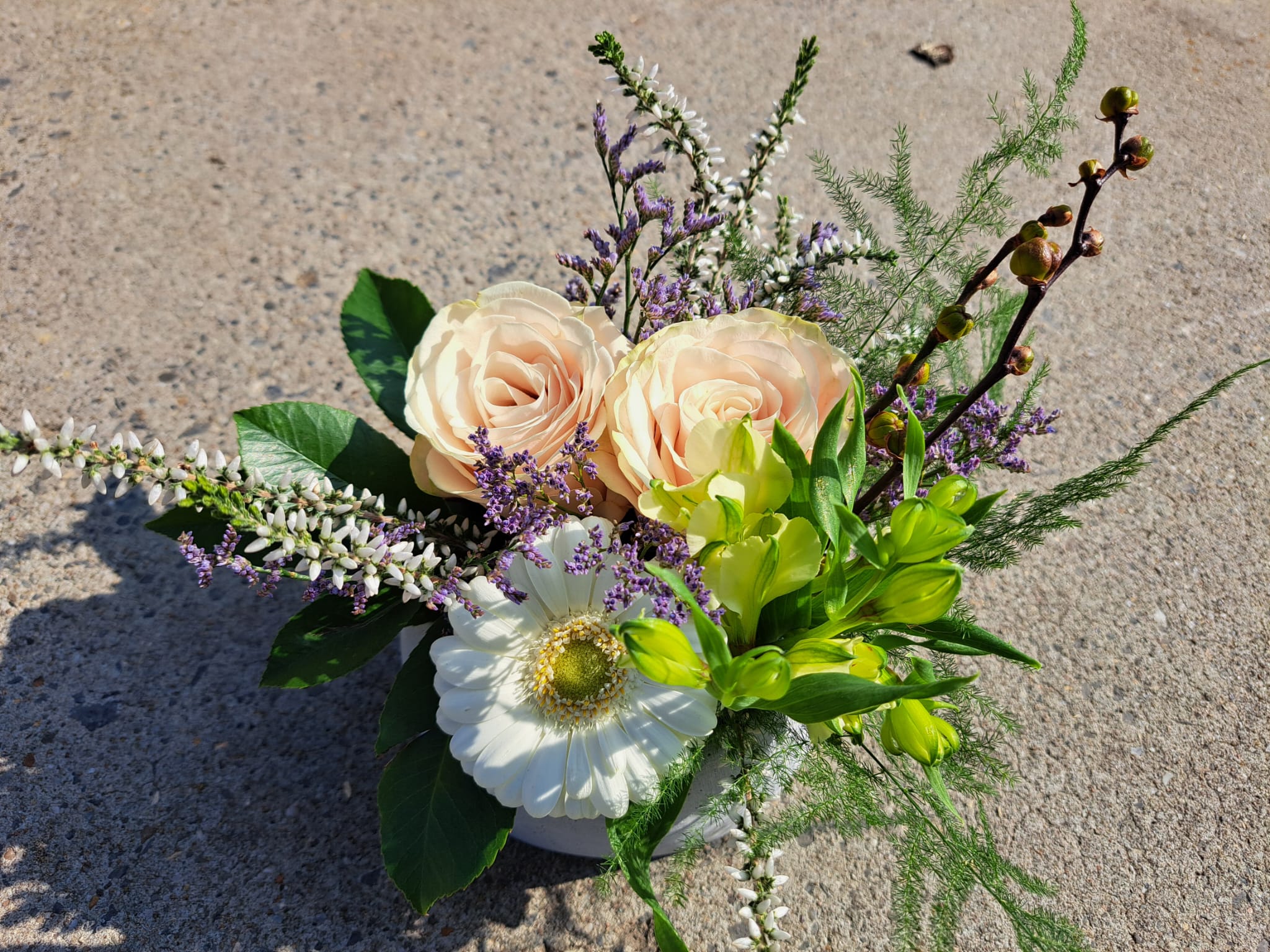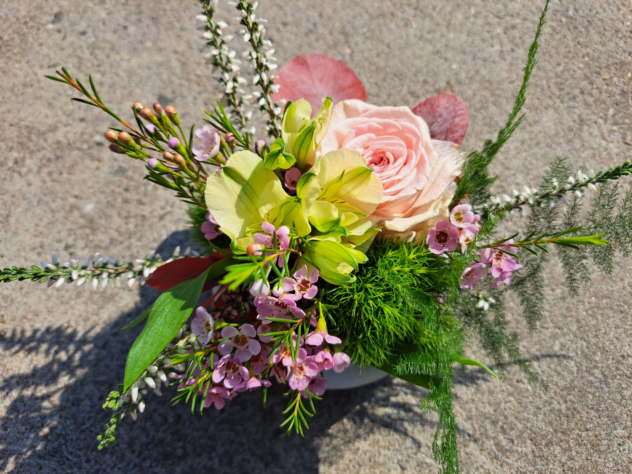 de kleur en de soort van bloemen kunnen afwijken van de foto, maar we zorgen steeds voor een combinatie van zachte kleuren
